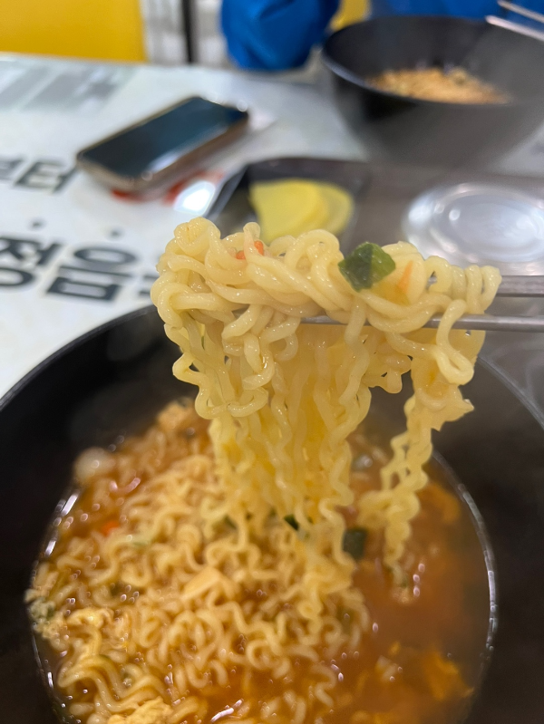 이곳에서 먹은 EX라면은 국물 맛이 깊고 개운하면서도 감칠맛이 살아있었습니다. 기본 라면에 계란이 풀어져 있고, 파와 고추 등의 고명도 정성스러워요. 면도 탱글탱글하게 잘 익혀져 있어서 불지 않았고, 국물과 아주 잘 어울렸습니다.