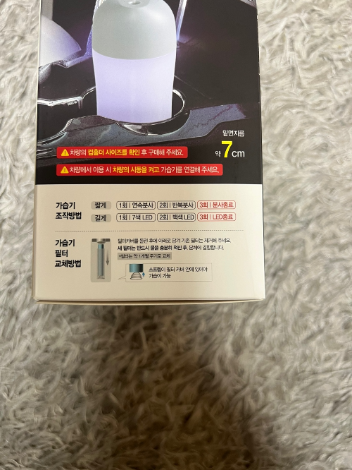 다양한 차량용 아이템들 사이에서 한눈에 들어온 가습기! 눈길을 사로잡는 디자인에 LED 기능까지 있다고 해서 바로 구매했죠.