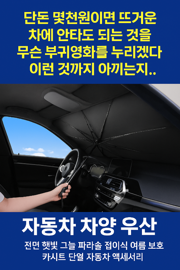 여름은 해가 갈수록 더 더워지고 있습니다. 단순히 불편한 것을 넘어 차량 내부 온도는 생명과 직결되는 수준까지 올라갈 수 있어요. 이럴 때, 단돈 몇천 원으로 차 안을 지킬 수 있다면… 이제는 선택이 아닌 필수라고 생각합니다.