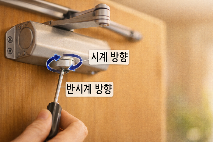 핵심은 조절 나사를 조금씩 돌려가며 문 닫힘 속도를 확인하는 것입니다. 과도하게 조절하지 않고 천천히 상태를 확인하면서 조정하면 누구나 쉽게 관리할 수 있습니다.