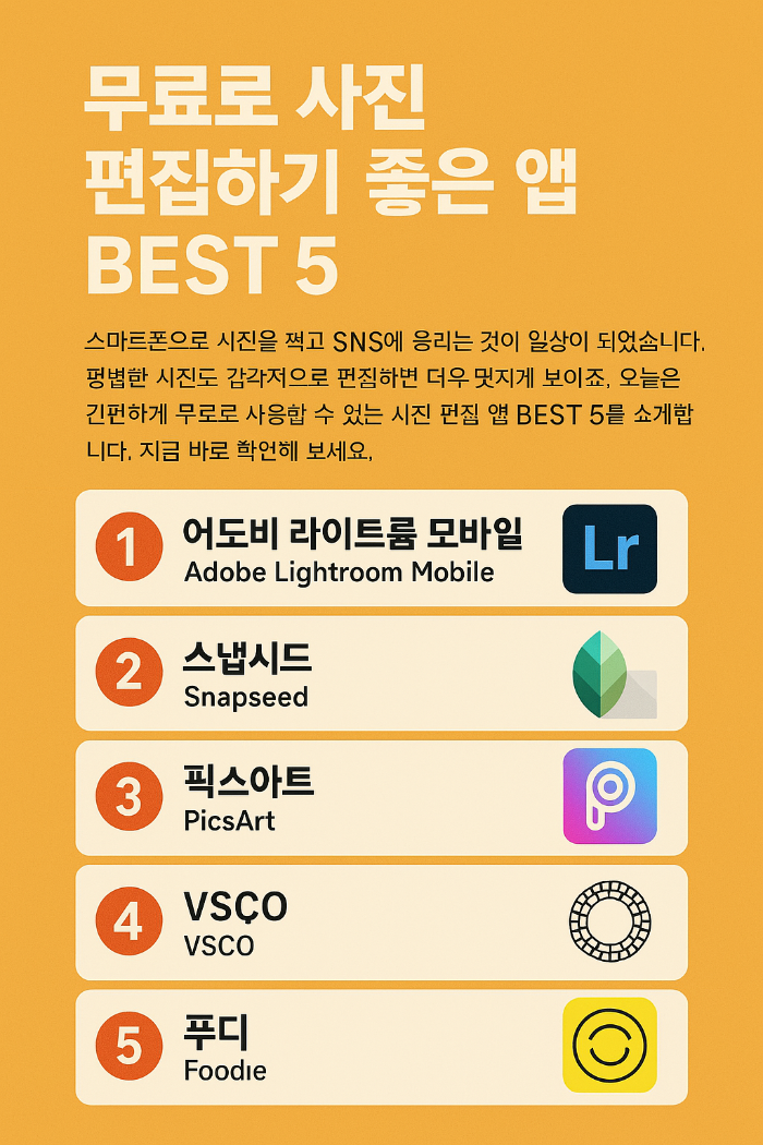 무료로 사진 편집하기 좋은 앱 BEST 5 (2025년 최신판)