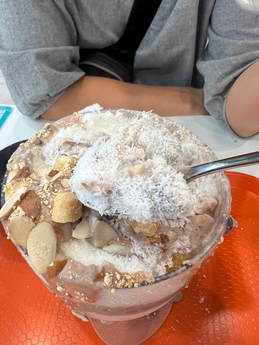 부드러운 얼음 위에 고소한 인절미와 달콤한 팥이 듬뿍 올라가 있습니다. 한입 먹으면 입안 가득 퍼지는 풍미가 일품입니다. 특히 팥의 달콤함과 인절미의 쫀득함이 조화를 이루어 맛의 균형이 매우 좋습니다.