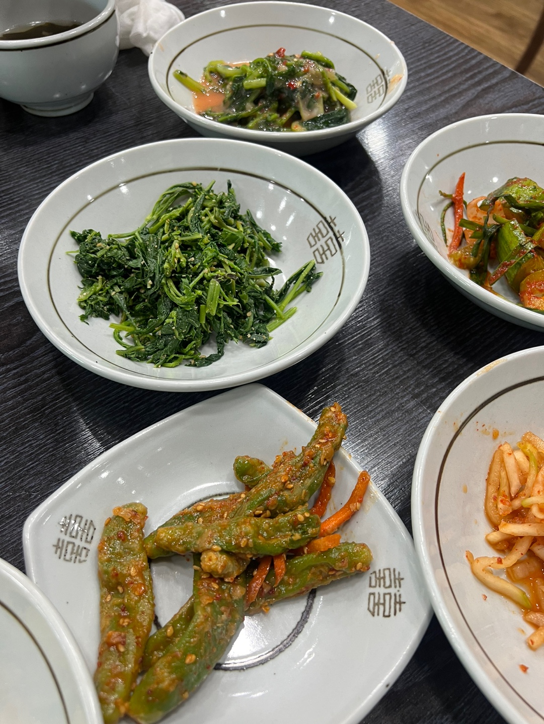 기본 상차림만 해도 열세 가지 이상의 반찬이 정갈하게 차려졌습니다. 각각의 반찬은 간이 세지 않고, 담백하고 깔끔한 맛이 인상적이었어요. 특히 나물류는 식감이 살아 있었고, 집에서 막 무쳐낸 듯한 싱그러움이 느껴졌습니다.
