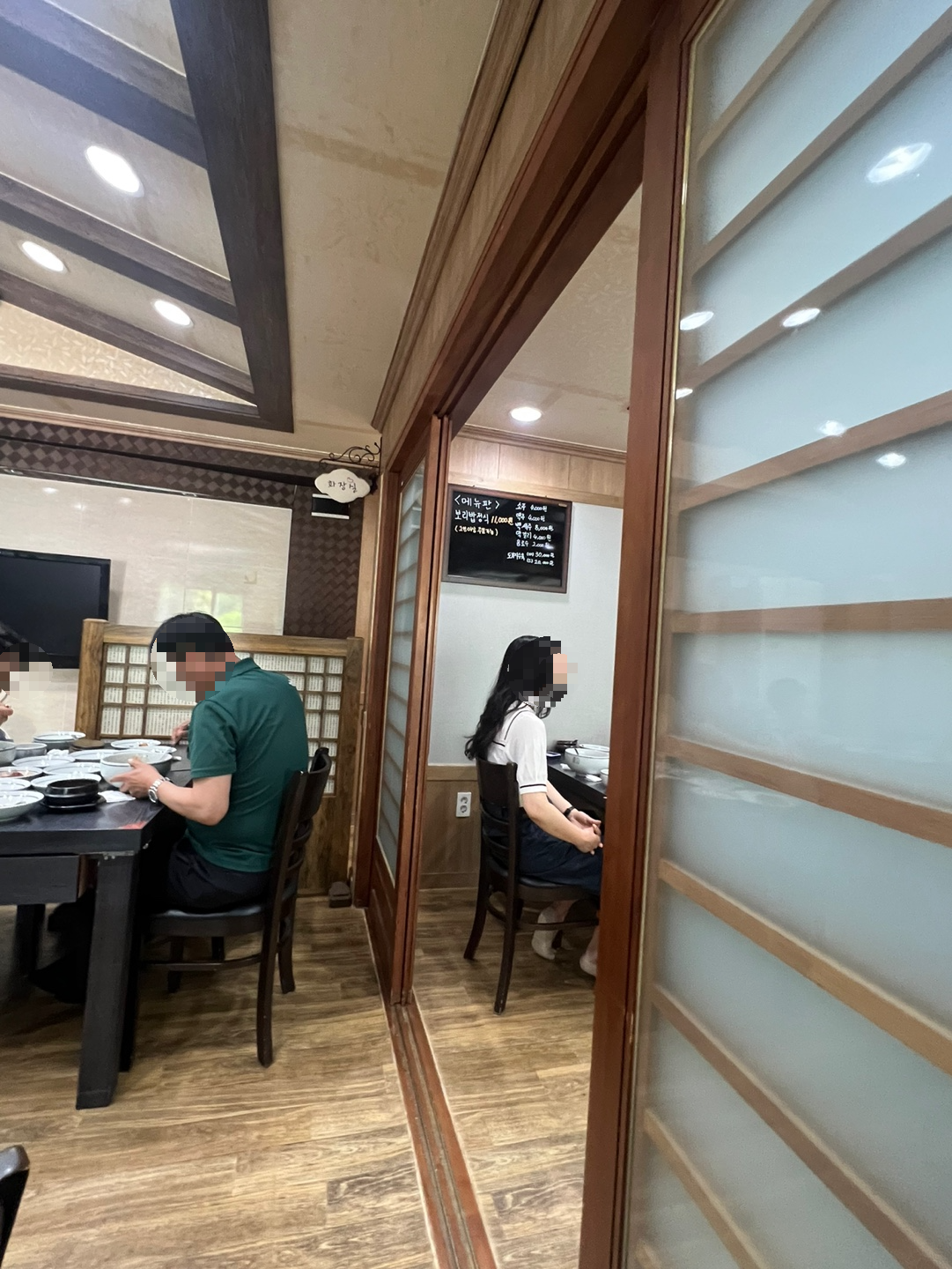 매장은 전통 한식당다운 정갈한 분위기를 자랑합니다. 우드톤 인테리어와 온돌방 좌식 테이블, 의자 테이블이 구역별로 나눠져 있어 원하는 좌석을 선택할 수 있었습니다. 특히 방마다 슬라이딩 도어로 분리되어 있어 프라이빗한 식사가 가능해 점심 약속이나 부모님 모시고 오기에 딱 좋습니다.
