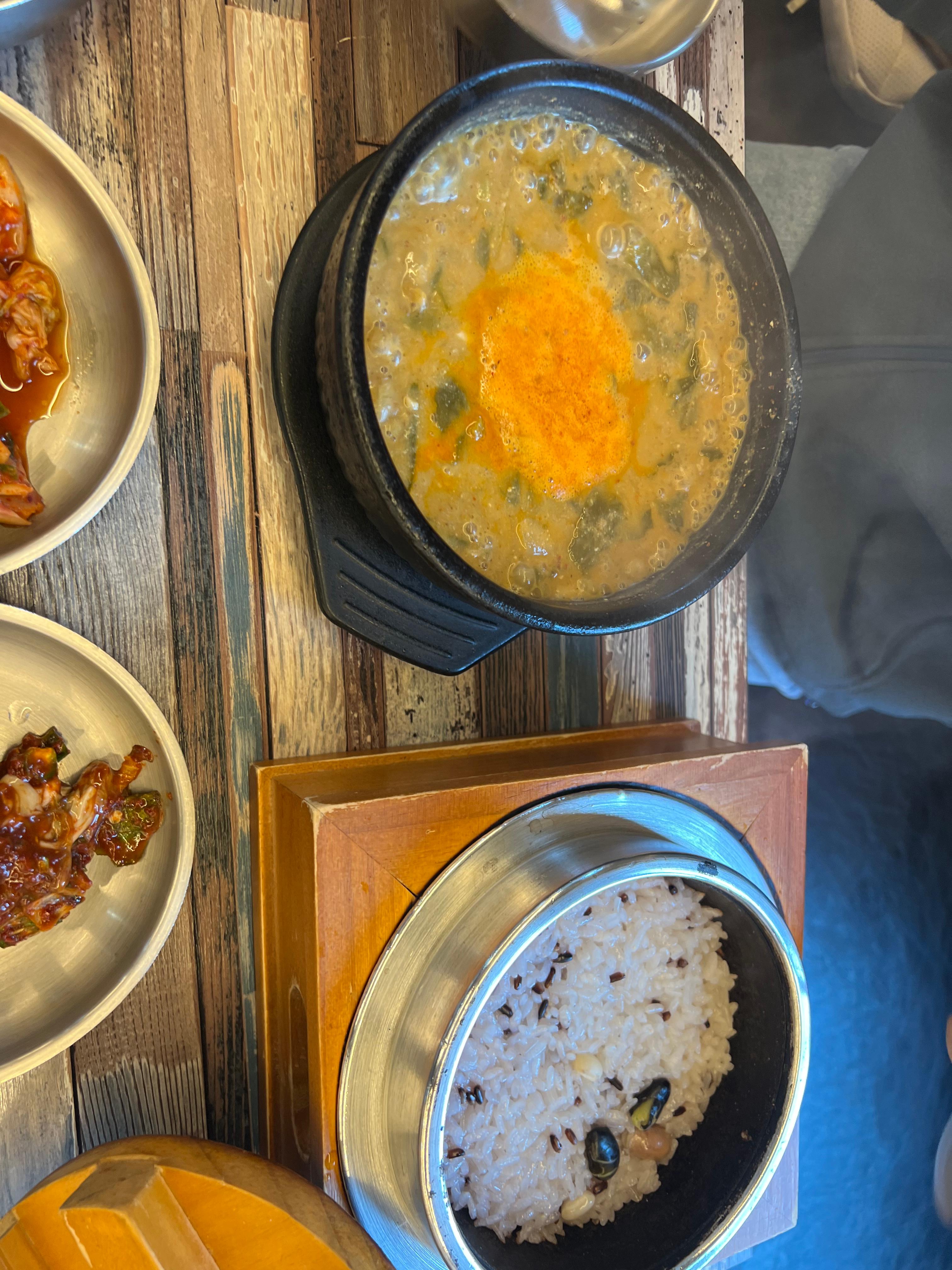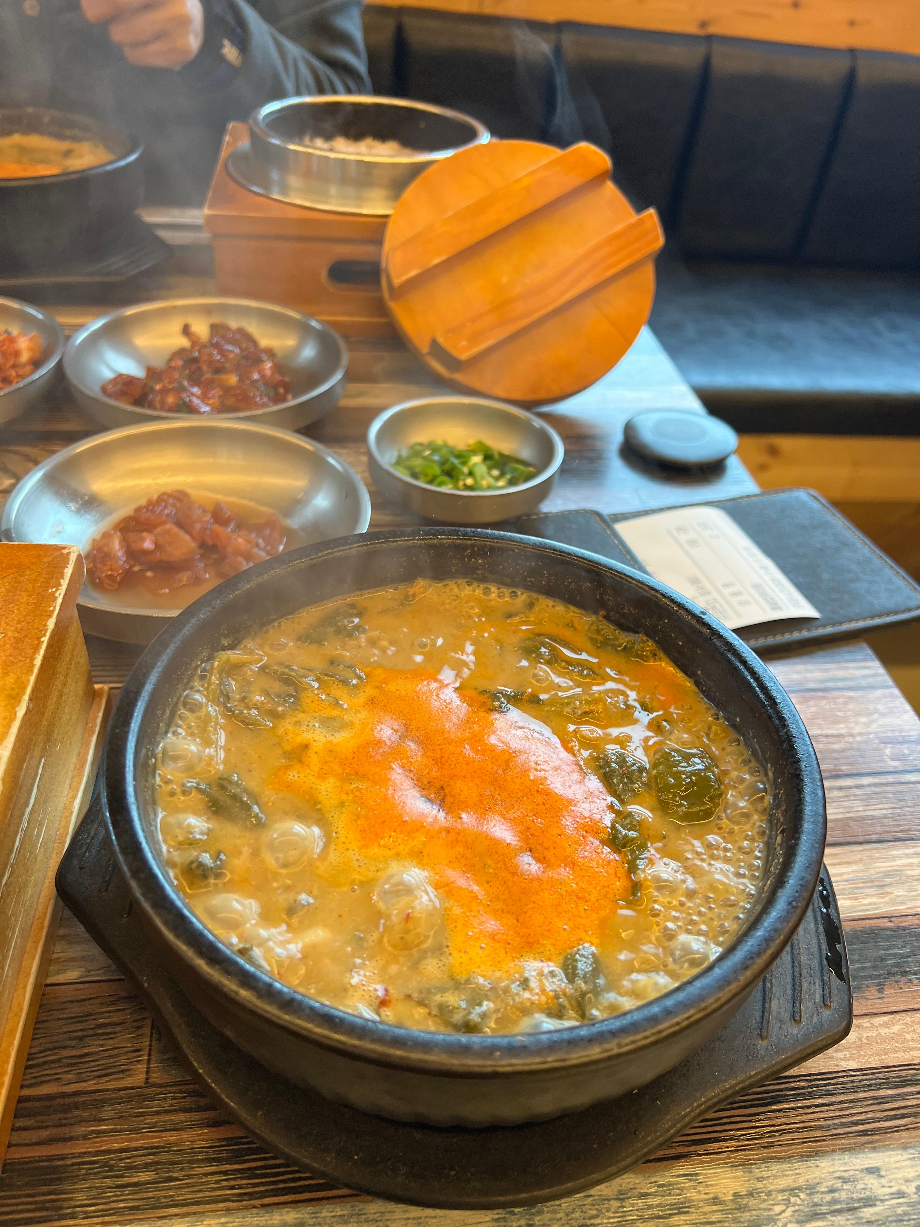 돌솥밥은 주문 후 약 15분 정도 소요됩니다. 하지만 기다릴 가치가 충분합니다. 보글보글 끓어오르는 진짜 가마솥밥은 윤기부터 다르고, 누룽지를 만들어 먹는 맛도 일품입니다. 마지막엔 뜨거운 물을 부어서 구수한 숭늉까지 즐길 수 있어 완벽한 한 끼가 됩니다.