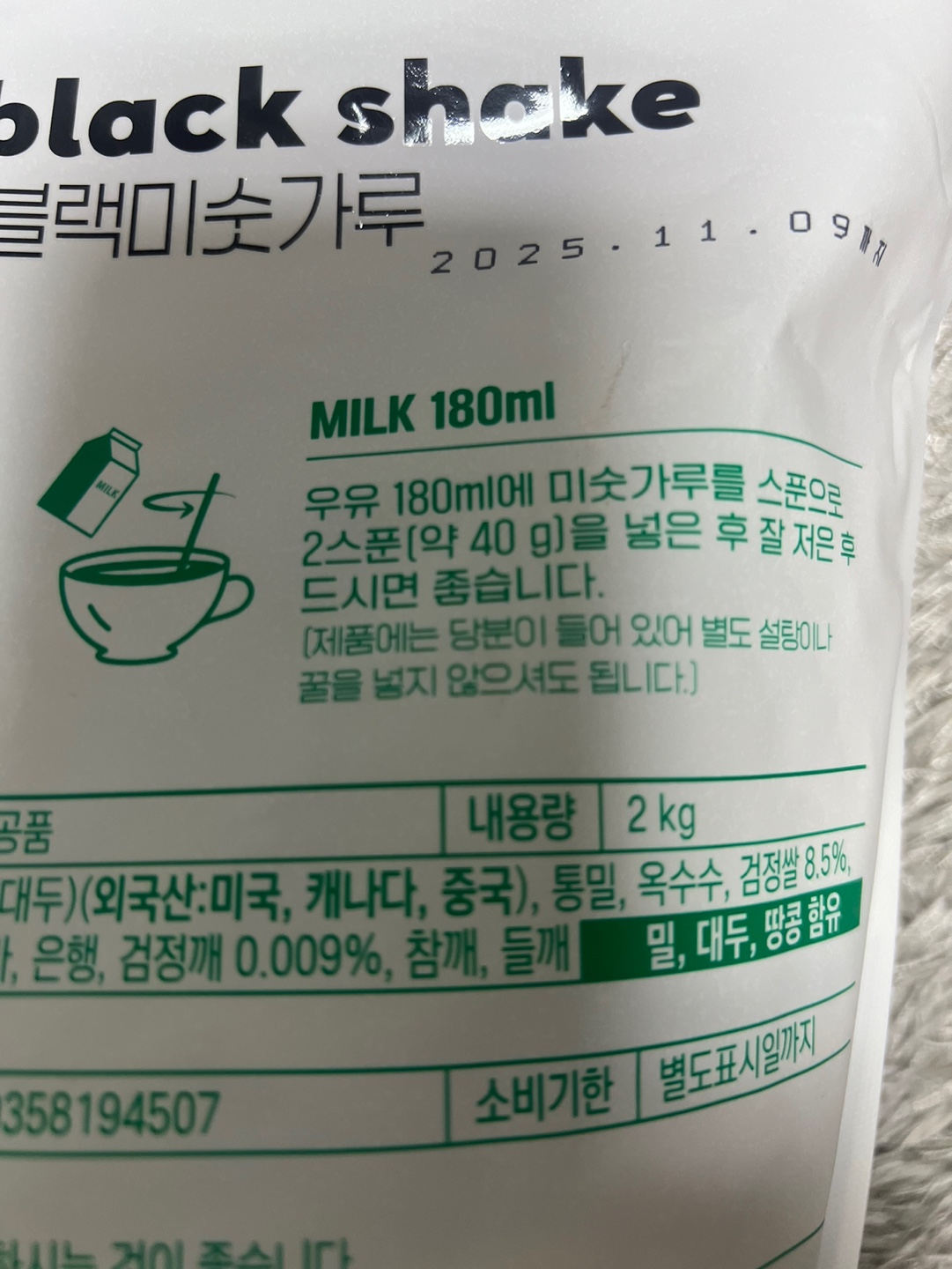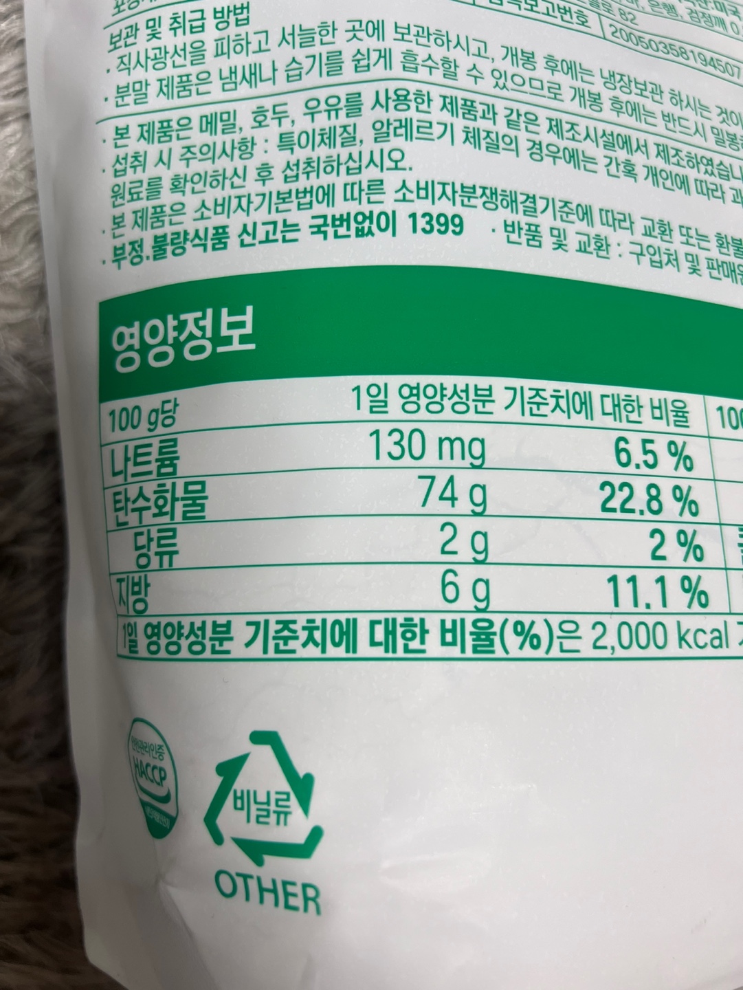 - 낮은 칼로리: 100g당 355칼로리로 보이지만, 실제로 우유 180ml에 2스푼(40g)을 타서 먹으면 약 89칼로리 정도로 다이어트에도 적합합니다.