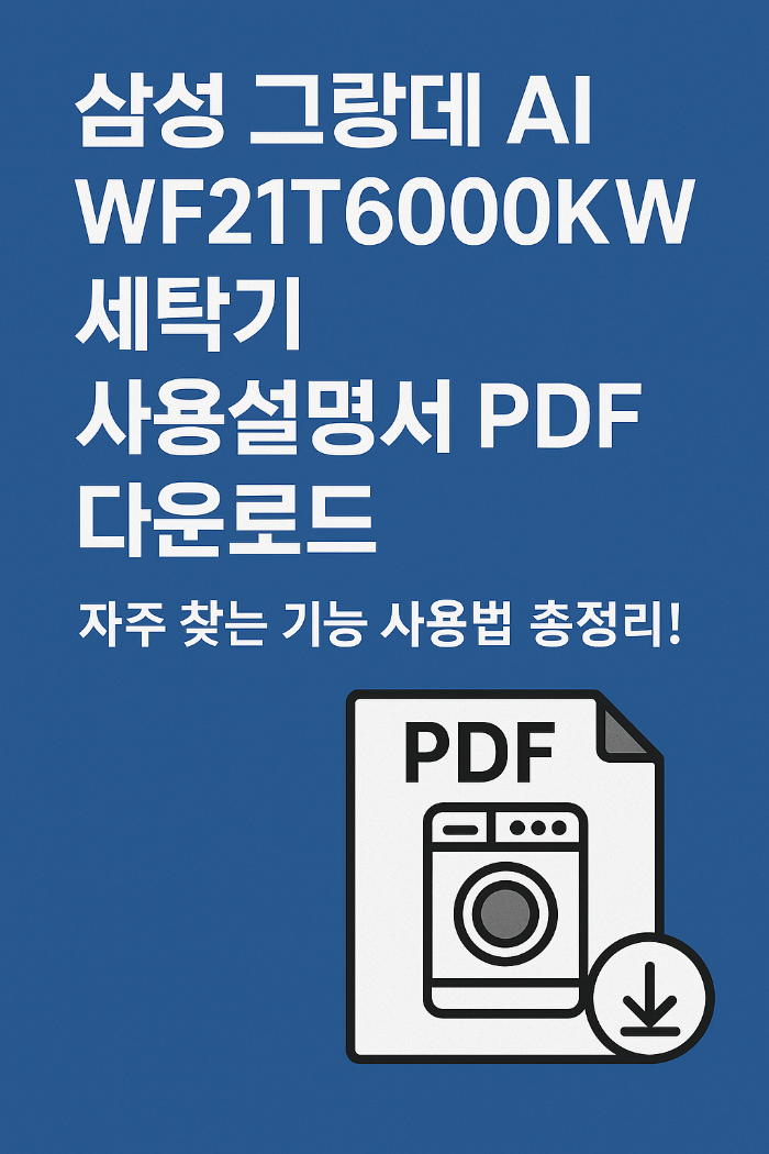 삼성 그랑데 AI WF21T6000KW 세탁기를 사용하다 보면 간혹 설명서를 찾지 못하는 경우가 많습니다. 본 포스팅에서는 실제 삼성 공식 설명서를 PDF로 제공하고, 가장 많이 사용하는 핵심 기능도 쉽게 정리했습니다. 지금 바로 필요한 정보를 확인해 보세요!