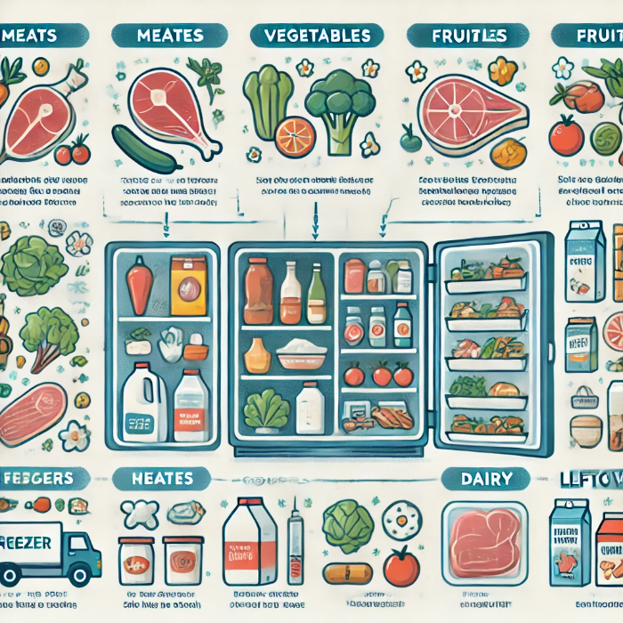 - 카테고리별 정리: 육류, 해산물, 반찬, 과일 등으로 분류하여 보관하세요.
