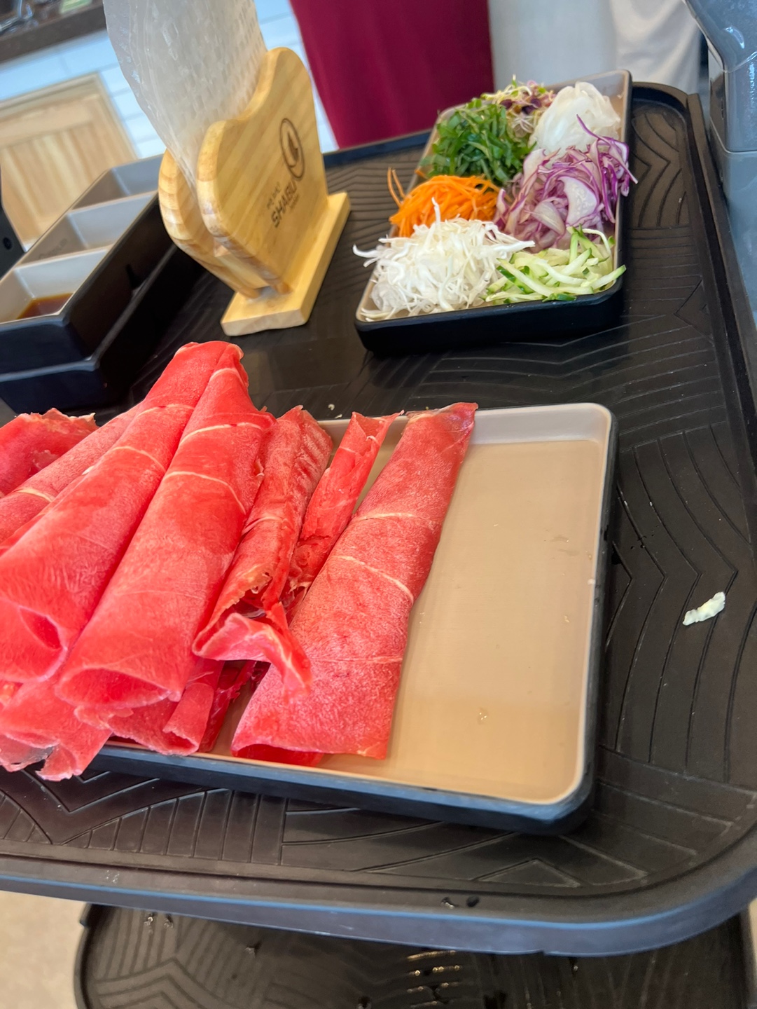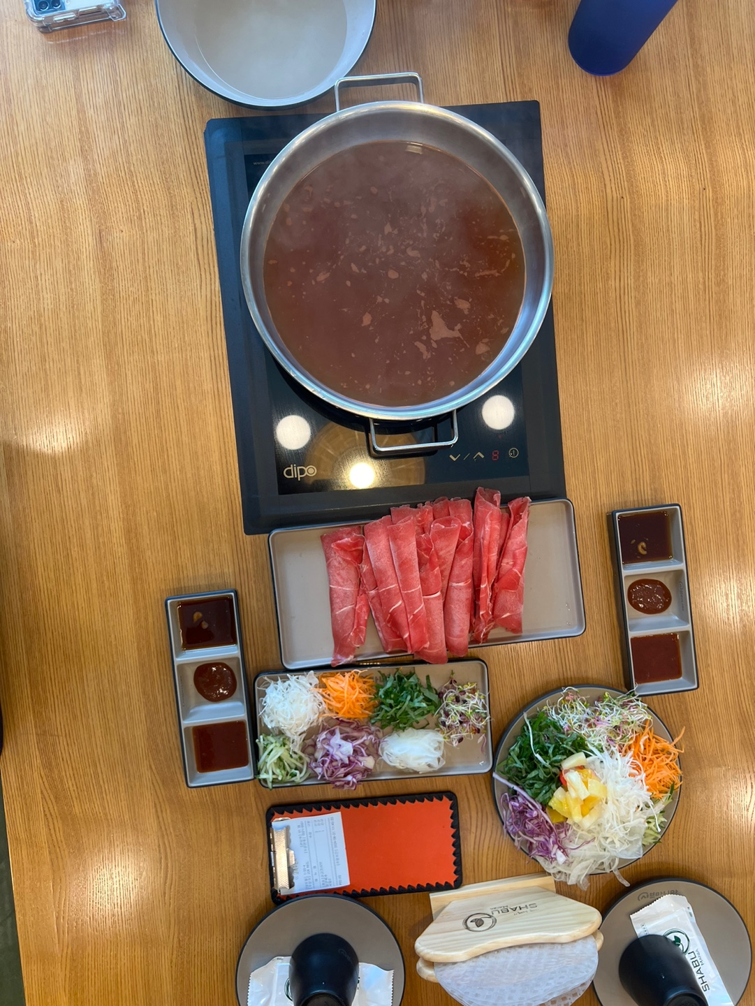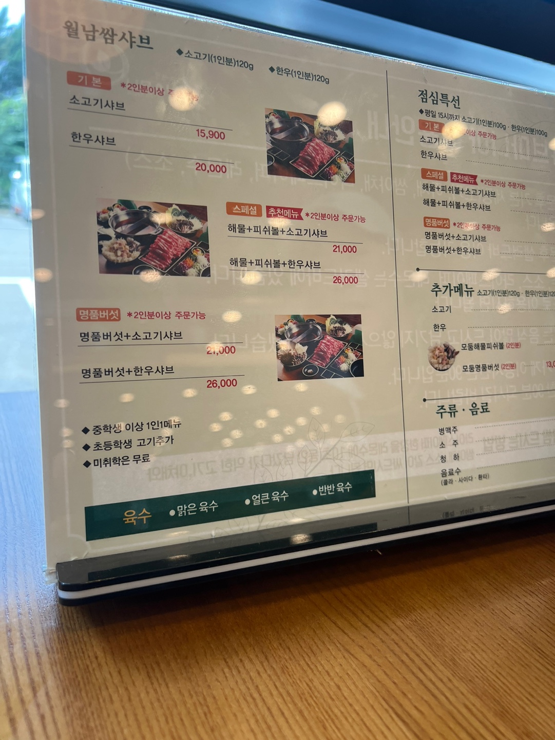 육수는 기본적으로 맑은 육수와 매운 육수 두 가지로 선택할 수 있으며,반반육수도 적혀있는데 이건 저도 잘모르겠습니다. 고기와 채소를 적절히 조합해가며 자신의 입맛에 맞게 먹을 수 있습니다. 신선하고 부드러운 소고기는 입안에서 살살 녹으며, 다양한 소스가 그 맛을 더욱 극대화시켜 줍니다. 고기를 육수에 살짝 담갔다가 건져내 먹는 샤브샤브의 매력은 고기의 풍미를 그대로 살리면서도 담백한 맛을 즐길 수 있어 좋습니다.