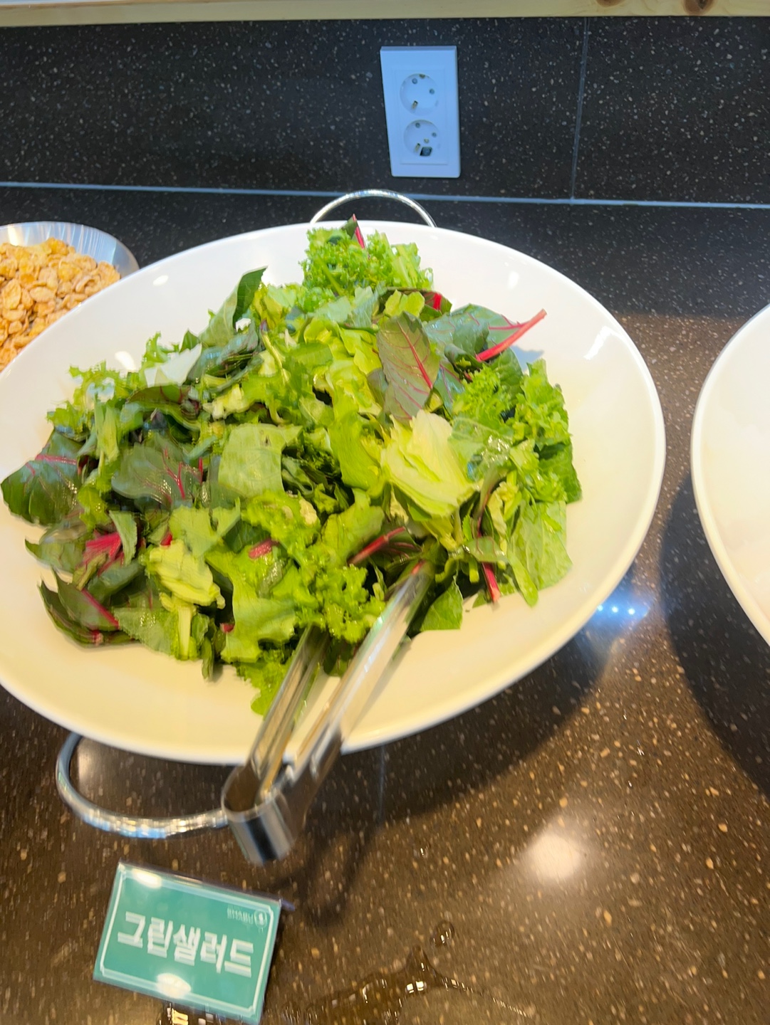 신선한 채소와 쫄깃한 버섯, 그리고 샐러드바