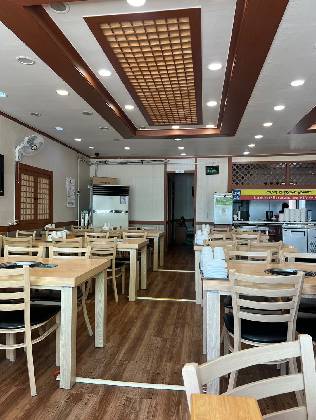 내부는 깔끔하고 아늑한 분위기로, 가족 단위 방문객들이 편안하게 식사를 즐길 수 있습니다. 넓은 테이블과 깨끗한 인테리어는 음식의 맛을 한층 더 돋보이게 합니다. 외부에서도 쉽게 찾을 수 있는 간판과 입구의 깔끔함은 첫 인상부터 좋은 느낌을 줍니다.