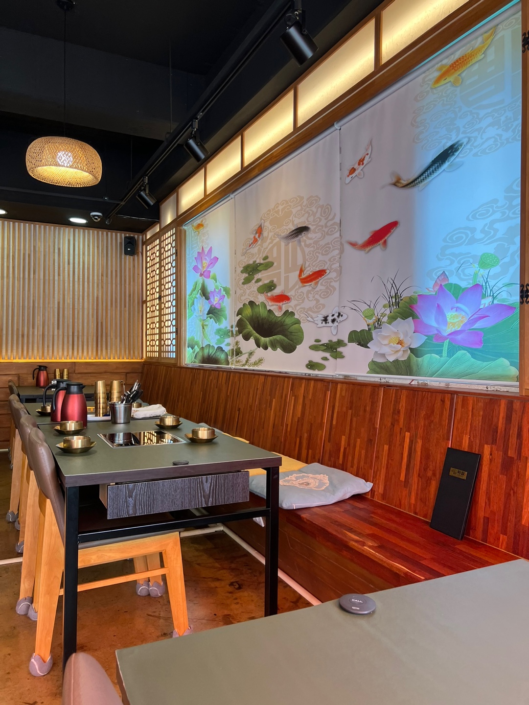 - 구성: 가마솥 영양밥, 한방수육, 된장찌개, 야채 샐러드, 잡채, 새우장, 단호박 감자 샐러드, 쌈채소, 메밀 전병, 계절반찬 등