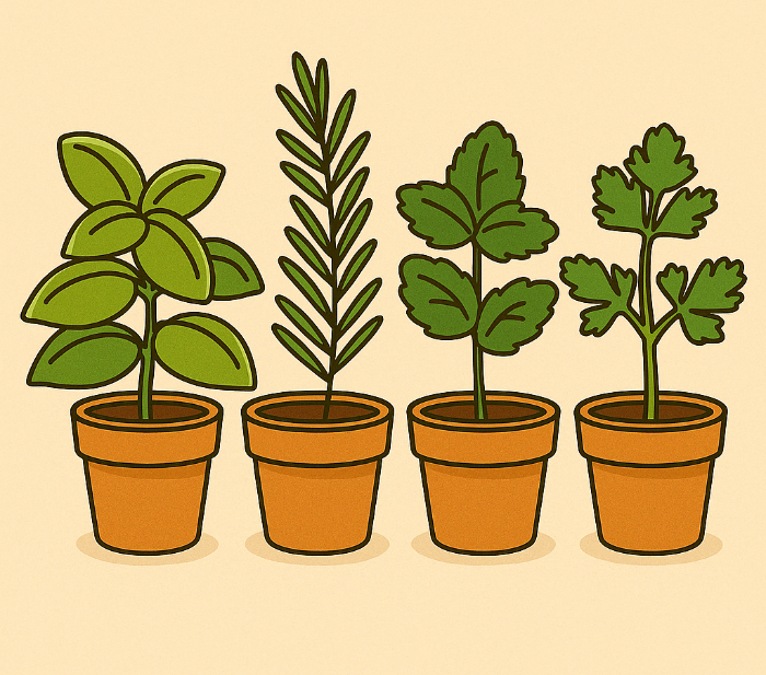 바질, 로즈마리, 민트, 타임, 오레가노 중 하나부터 시작해보세요.