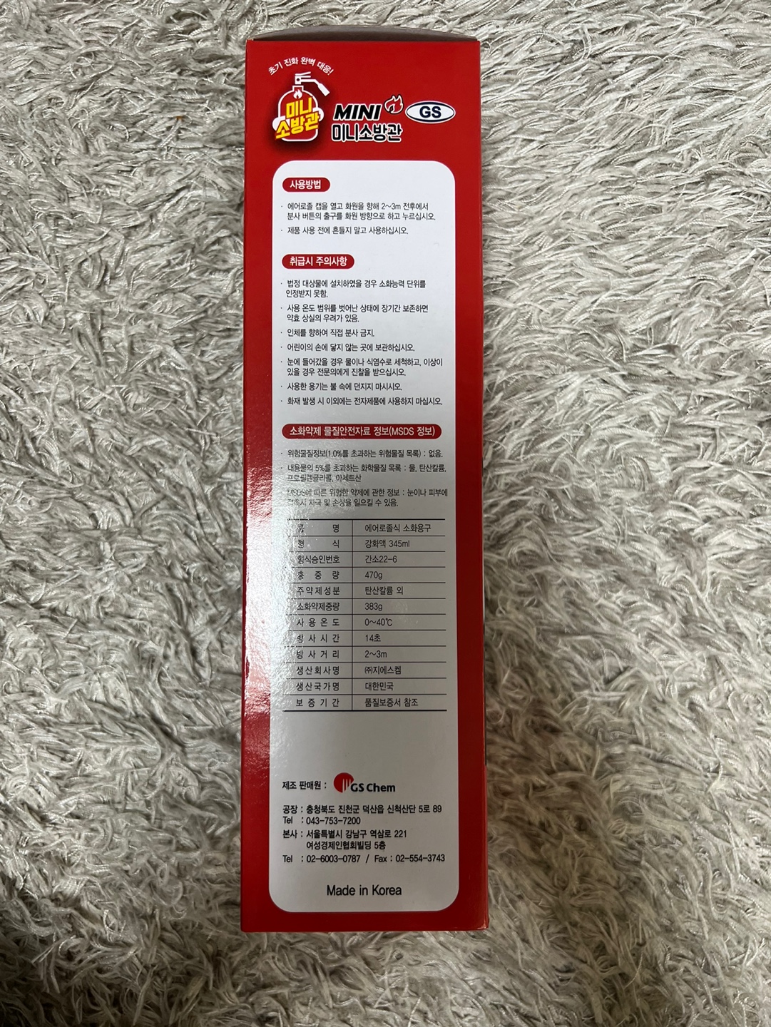 미니소방관은 초기 화재 진압용으로 사용해야 하며, 대형 화재에는 일반 소화기를 이용하는 것이 좋습니다.