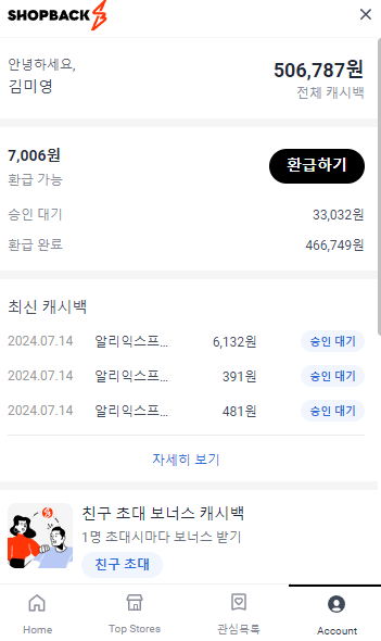 - 보너스 지급: 구매가 확인되면, 초대한 친구와 본인 모두 보너스 캐시백이 적립됩니다.