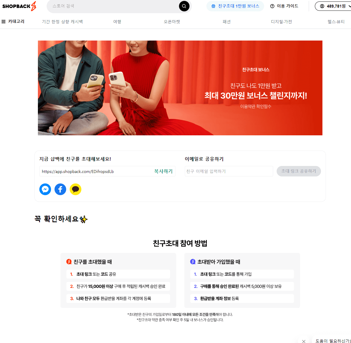 ShopBack Korea는 친구를 초대하여 보너스를 받을 수 있는 프로그램을 제공합니다. 다음은 그 방법입니다.
