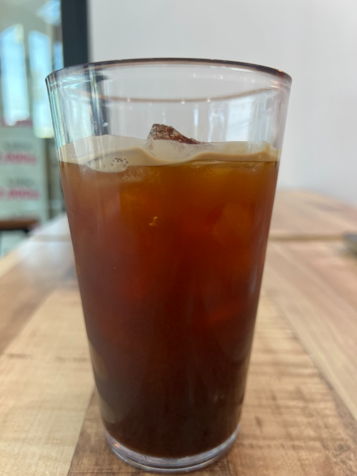 주문한 음료는 아이스아메리카노. 투명한 컵에 가득 담긴 커피는 보기만 해도 시원합니다. 첫 모금에서 진하게 퍼지는 원두의 향, 그리고 끝맛의 깔끔함이 인상 깊었습니다. 얼음이 녹아도 맛이 밍밍해지지 않아 끝까지 안정적인 맛을 유지해주는 점이 마음에 들었습니다.