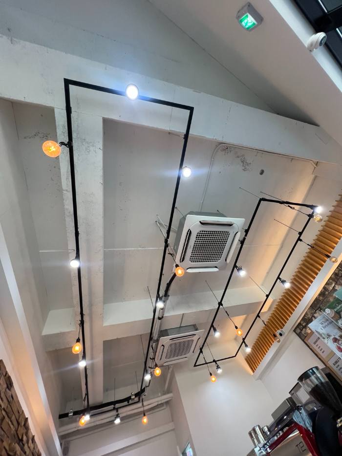 하삼동커피 덕하점은 모던한 인테리어와 따뜻한 조명이 어우러진 공간이 인상적입니다. 천장이 높고 공간이 넓어 답답함 없이 여유로운 분위기를 즐길 수 있습니다. 특히 천장 조명과 전등 라인은 감성적인 느낌을 더해줍니다. 오픈형 카운터와 진열된 디저트, 음료도 깔끔하게 관리되고 있어 첫인상부터 만족스러웠습니다.