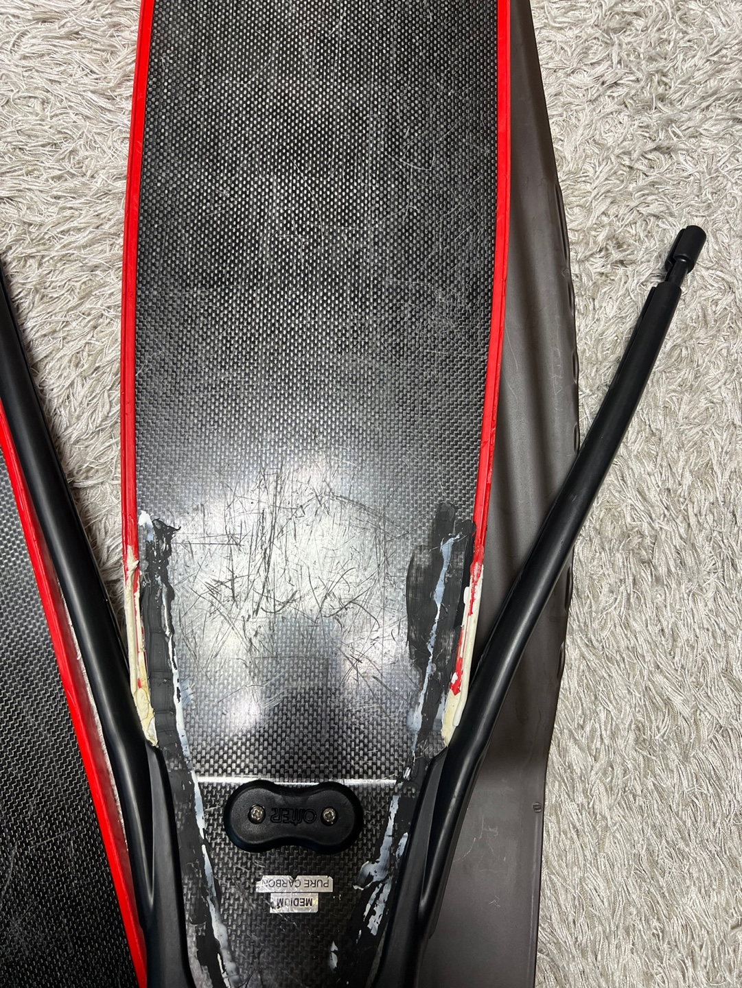 분리된 스팅레이 에보 풋포켓에 리더핀 퓨어카본 블레이드를 결합합니다. 볼트를 단단히 조여서 고정해 주세요.