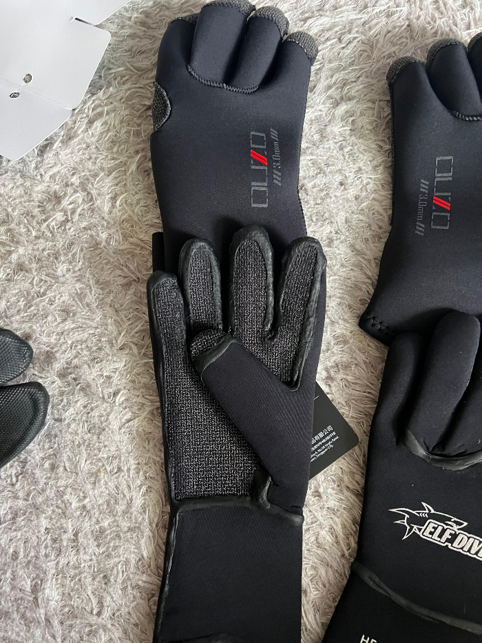 장갑의 본체는 대부분 네오프렌으로, 미세 기포를 품은 합성고무입니다. 신축성과 보온력이 좋아 물속에서 체온을 지켜줍니다. 내부 표면 처리에 따라 오픈셀과 크로스셀(라이닝)로 구분합니다.