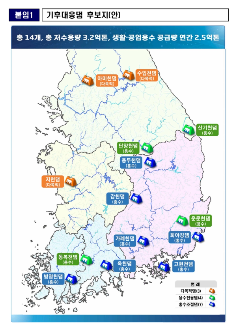 환경부 기후대응댐 후보지 14곳 발표