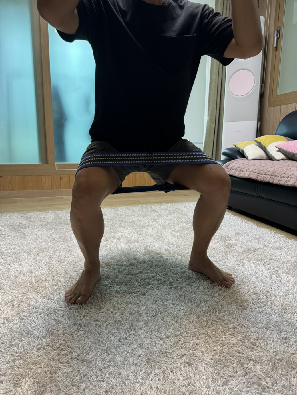 힙업밴드를 사용한 스쿼트는 평소보다 더 많은 근육을 사용하게 하여 운동의 강도를 높여줍니다. 특히 힙업밴드를 착용하고 스쿼트를 할 때는 다리와 엉덩이 근육이 더욱 활성화되는 것을 느낄 수 있었습니다. 이런 강한 자극을 지속적으로 받다 보면 허벅지가 더욱 단단해질 것이라는 믿음이 생겼습니다.