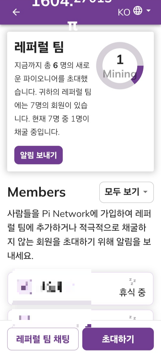 파이코인은 **초대 시스템**을 통해 채굴 속도를 증가시킬 수 있습니다.