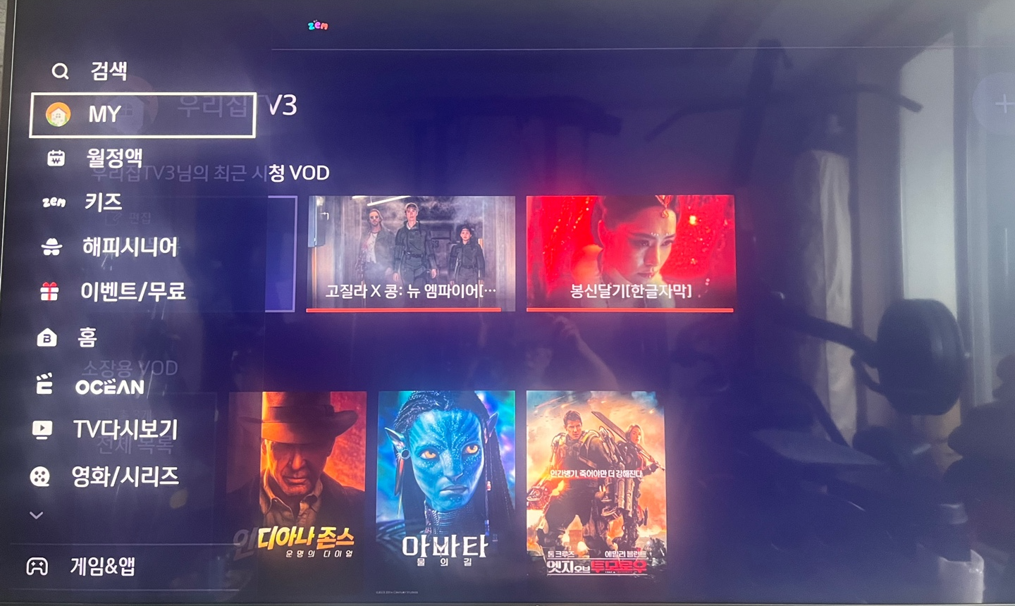 2.MY 버튼 누르기: 리모컨에서 ‘홈’ 버튼을 누릅니다. 이 버튼을 누르면 BTV의 메인 메뉴 화면이 나타납니다.