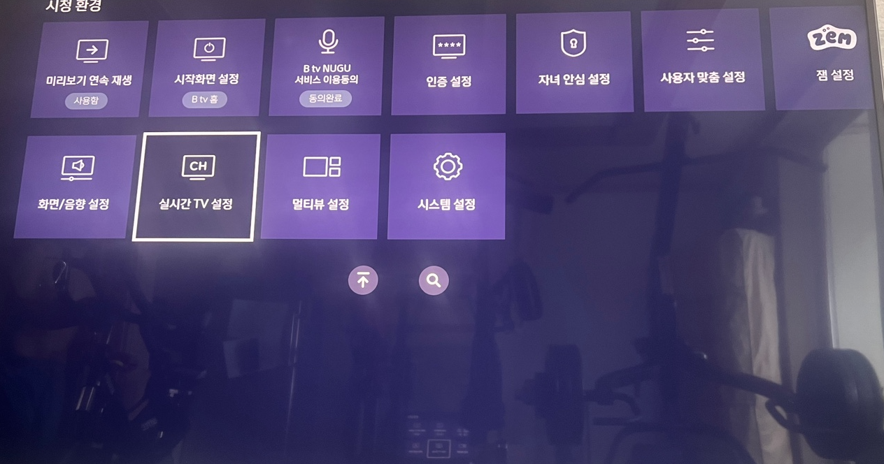 4.실시간TV설정 선택: 설정전체보기에서 ‘실시간TV설정’을 선택합니다. 이 메뉴에서는 채널설정